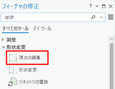 - [フィーチャの修正] ウィンドウの [形状変更] セクション → [頂点の編集] ツールをクリックします。