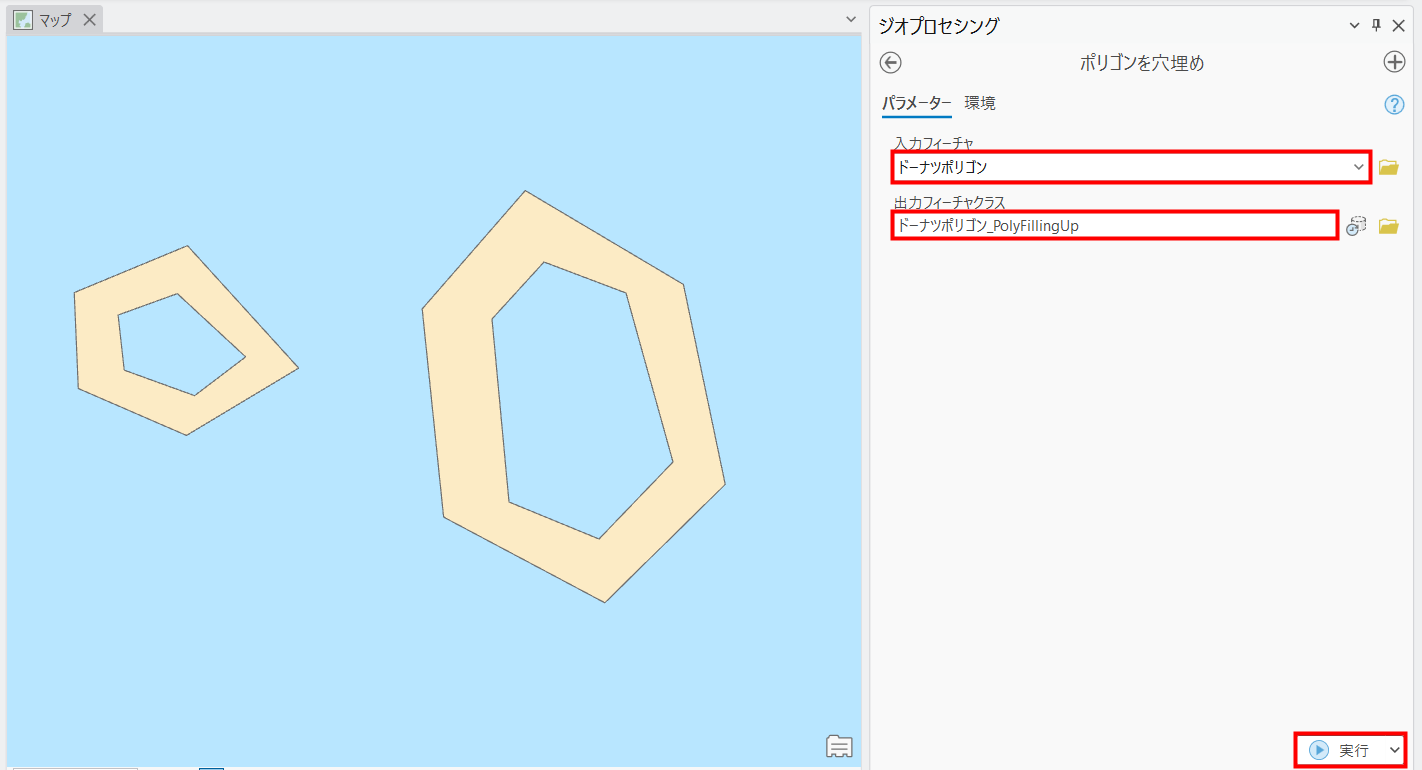 ArcGIS Pro: 単一ポリゴン内の穴埋めをする方法