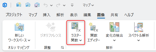 ※現在のレンダリングの統計情報とオプションを使用してラスター データセットをエクスポートするには、[レンダリングを使用] チェックボックスをオンにします。 - [画像] タブの [ラスター関数] をクリックし、[ラスター関数] ウィンドウを開きます。