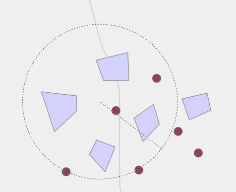 例)円の中のポリゴン レイヤーは選択不可にし、ポイント レイヤーのみを選択したい。手順
